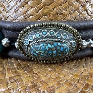 Shady Brady Straw Hat Medium Western USA Brown Band Turquoise/Stone Details