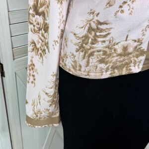 Shae Anthropologie Floral Vintage Inspired Ribbon Trim Cardigan Sweater Pink Tan