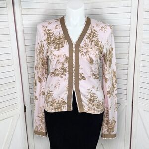 Shae Anthropologie Floral Ribbon Trim Cardigan Sweater Pink Tan Large