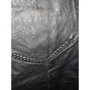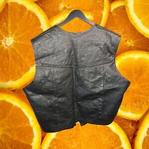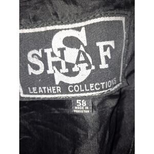 Shaf Men's Black Leather Sleeveless Snap Front Motorcycle Biker Vest Size 58