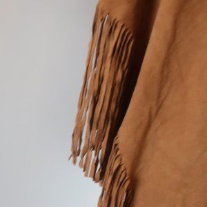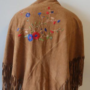 Shag Boutique Brown Faux Suede Fringe Shawl With Floral Design *