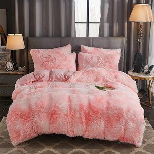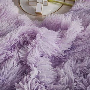 NEW Shaggy Fluffy Faux Fur Duvet Cover Set Button Closure Velvety Bedding Set Comforter Cover with Pillowcase Lilac, full /Queen, King