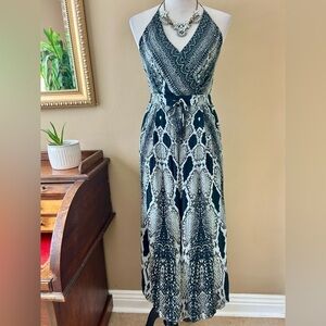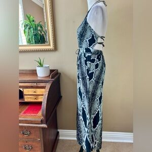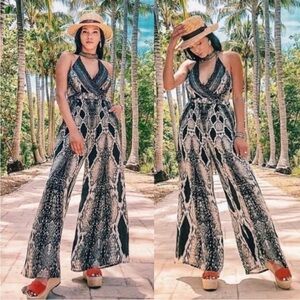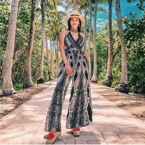 Shahida Parides Silk Jumpsuit Python Snake Animal Print Wide Leg Halter Size S M