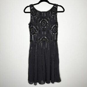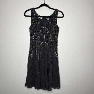 Shail K Beaded Gray Short Cocktail Fit & Flare Dress Size 6