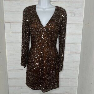 Shail K. Womens Sequin Cocktail Prom Mini Bodycon Dress Long Sleeves Size 2