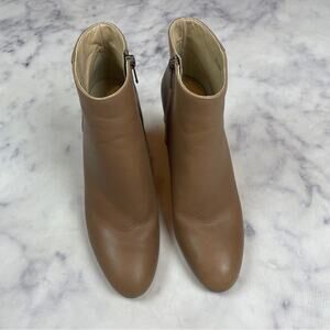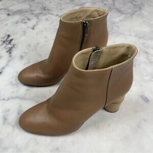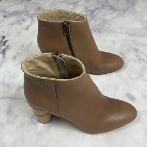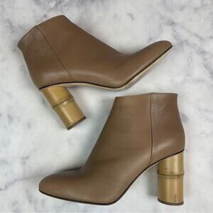 taupe Italian Leather Ikebana Bamboo Heel Ankle Boots from Shaina Mote. zip closure. leather upper, lining and sole. approx 3.5” heel. made in Italy. ** storage/ dust bag included ** EUC - worn just 3-4 times - with just a couple faint scuffs on leather.