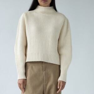 natural/ cream Luca Organic Cotton Funnel Neck Crop Sweater from Shaina Mote. 100% organic cotton. relaxed crop silhouette. EUC - worn just twice - no flaws.