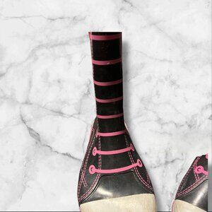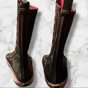 Shake It Up Girls Tall Rubber Boots With Pink Laces & Stitching Size 2 Black