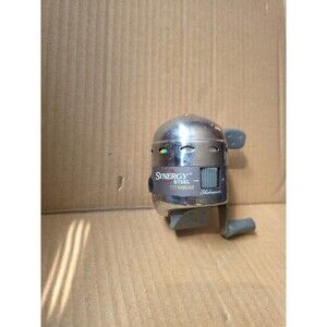 Keywords: Shakespeare, Synergy Steel, Titanium, Spincast Reel, Fishing Reel, 2 Ball Bearings, Fishing Gear, Angling, Outdoor Recreation, Sporting Goods, Fishing Tackle, Silver Fishing Reel, Gray Fishing Reel