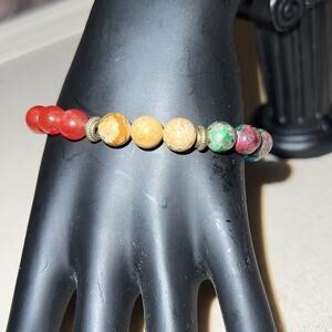 Shakra multi colored beaded elastic bracest with lotus flower charm NWOT
