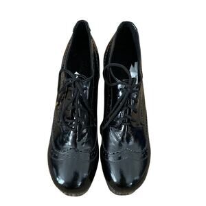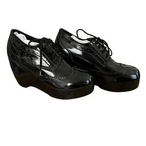 Shakuhachi Black Patent Leather Platform Wedge Oxfords – Cult Archival, Size 7