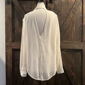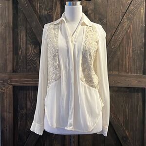Shakuhachi sheer button long sleeve down top Sz-XS