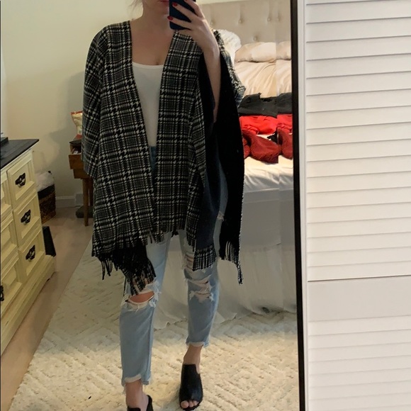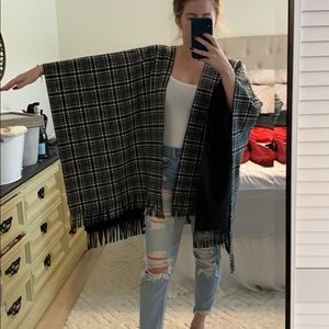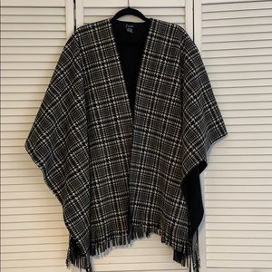 Black and white pattered shall with fringe detailing along the bottom only worn twice