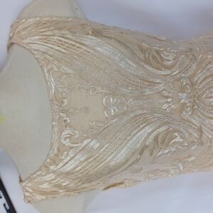 Shall We Cream Embroidered Overlay Cocktail/PartyWedding Dress, 18" PTP, 43" L