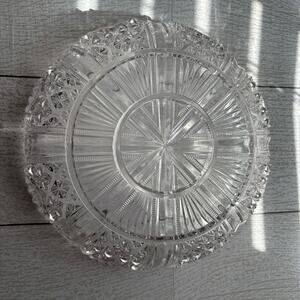Shallow Cut Glass Serving Dish Scalloped Edges