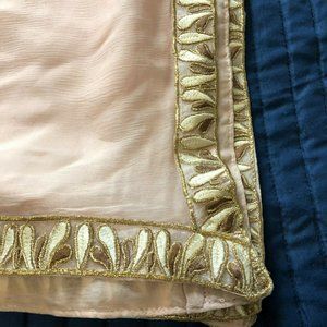 Shirt has embroidery design on the front & Back.Fabric is Fine quality Chiffon and has attached slip. Trouser is plain. Chiffon Dupatta has border.See measurements to get better idea.Due to heavy embroidery underarm area is a bit scuffed due to friction, not very visible while wearing. See last photo.Don,t waist Couple of hundred dollars for an upcoming party when you can wear a very high quality suit for less