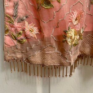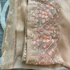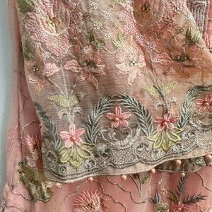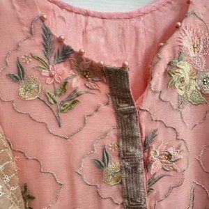 Worn Twice Custom Stitched Shalwar kameez,& dupatta. Shirt has all over embroidery design on the front. Fabric is fine quality Chiffon and has attached