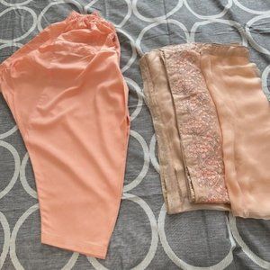 slip. Shalwar is plain & Belt style. Chiffon Dupatta has embroidery. The size is medium and suit was stitched by tailor.I am Providing measurements to give