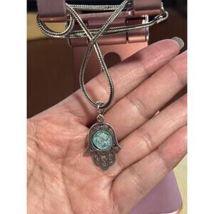 Shamay and Benlulu Chai in Hamsa Necklace silver 925 Roman glass center accent
