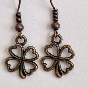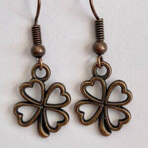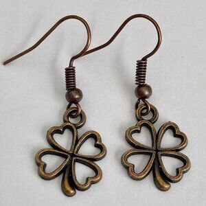 Shamrock Earrings Copper Plated Irish 4 Leaf Clover Luck Celtic St. Patricks