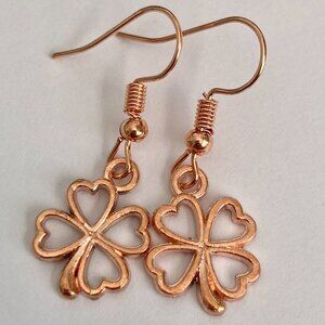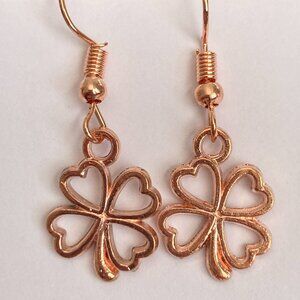 Shamrock Earrings Rose Gold Plated Irish 4 Leaf Clover Luck Celtic St. Patricks