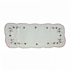 Shamrock Embroidered Linen Dresser Scarf Runner Lace Cottage Core Granny Vintage No stains or other defects Measures approx. 16" x 40"