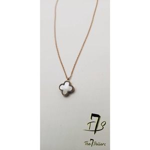 Shamrock Pendant with Shell and Black Enamel filled back Chain Rose Gold
