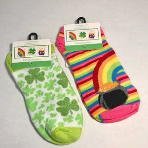 Shamrock Socks St Patricks Day Irish Celtic Pot Gold Rainbow Green 2 Pairs Lot