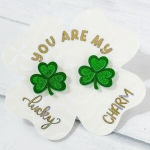 Shamrock Earrings-3 Leaf Clover Stud-St Patricks Day Earrings-Sparkly Green Stud