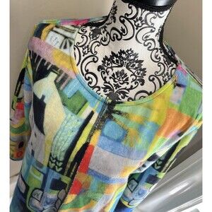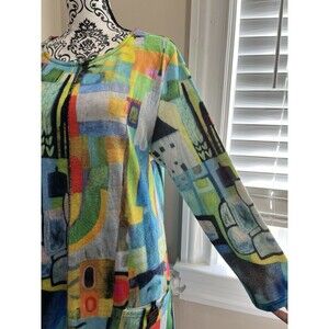 Shana Artsy Asymmetrical Tunic Top House All Over Print Lagenlook Womens XL