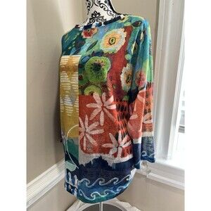 Shana Artsy Dolman Sleeve Tunic Top Floral All Over Print Lagenlook Womens XL