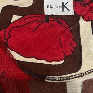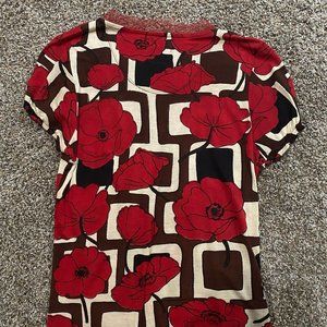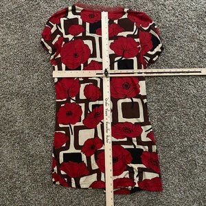 Shana K Womens Beaded Blouse Extra Large Red Floral Cap Sleeve V-neck Bodycon