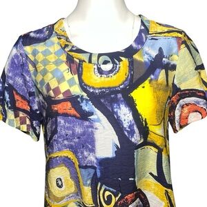 Shana Lagenlook Contempory Artsy Art to Wear Abstract Print Dress Size Small