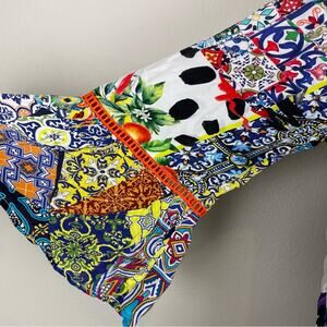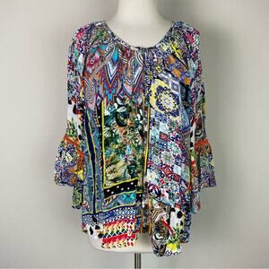Shana Multicolor Geometric Floral Flared Sleeve Button Front NWT Silk Top Med