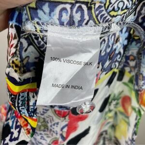 Shana Multicolor Geometric Floral Scoop Neck Flared Sleeve Button Front NWT Silk Top Medium
