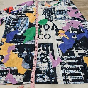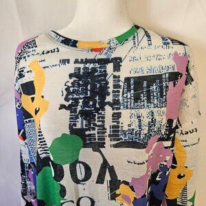 Shana Size M Art to Wear Newsprint Collage 3/4 Dolman Sleeve Top