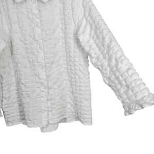 Shana Sz Medium White Wearable Art to Wear Long Sleeve Blouse Shirt Top Unique