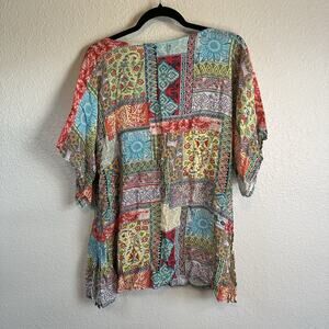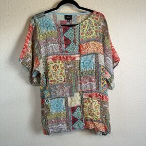 Shana Top Viscose Silk Lightweight Blouse M Short Sleeve Patchwork Art To Wear