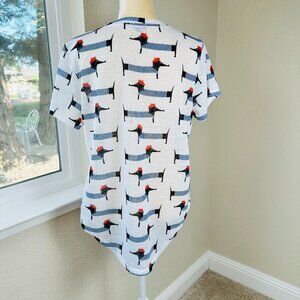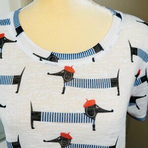 Shana Top Womens Medium White Parisian Dachshund All Over Print Travel Dog Lover