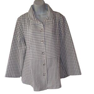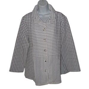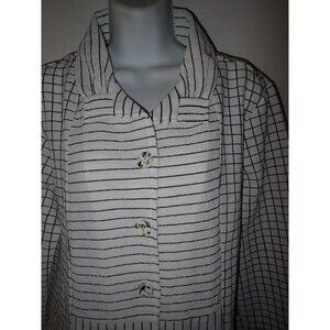 Shana Tunic M Crinkle Textured Abstract Grid Print 3/4 Sleeve Artsy Top Women