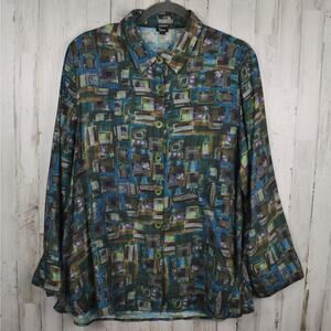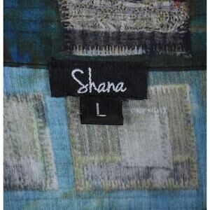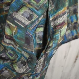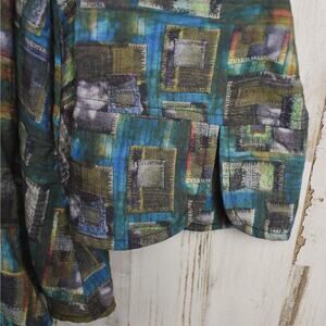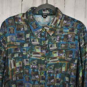 Shana boho artsy abstract back print button up shirt top size large w/ pockets