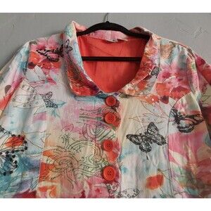 Add a touch of elegance to your wardrobe with this Shanak women's jacket in size S, 16.5 Inch Of Armp To Armp and 20 inch Long ,beautiful, pretty ,Spandex, Very Good Condiction, The jacket features a beautiful butterfly decoration with sparkling sequins and a paisley pattern. The button closure adds a classic touch to the jacket, making it suitable for any occasion, whether it's travel, casual outings, formal events, or business meetings.