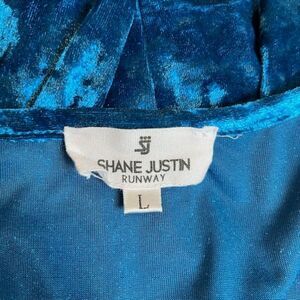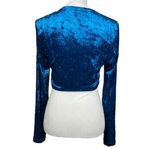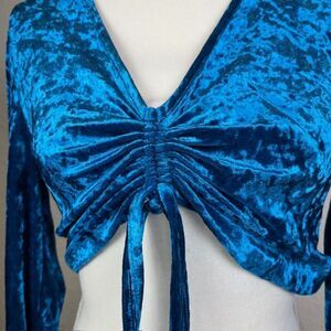 Shane Justin Runway Women's Velour Stretch Crop Tie Front Blouse Blue L. Excellent condition. See photos for details and measurements. Shop my closet to combine other items for one shipping charge! fall, winter, spring, summer, club, dancing, sexy, bare midriff, tie front, sleeves, date night, event, party