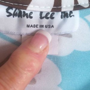 Elevate your ensemble and enhance your style with the Shane Lee Inc Artsy Blue Tan Asymmetrical Tunic.