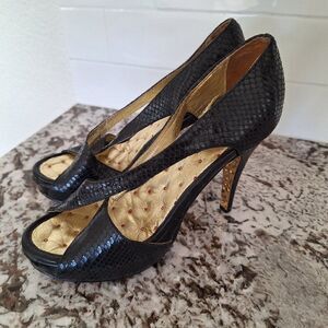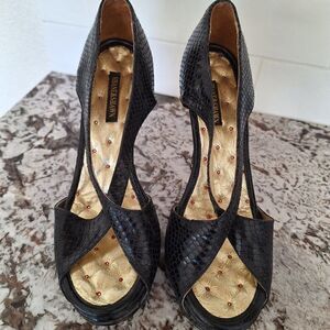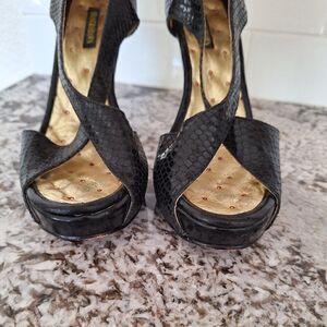 Shane‎ and Shawn Black Gold Strappy Open Toe Heels