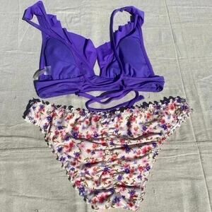 Shane & shore, bikini purple tops ruffles SZ L floral bottom SZ XL