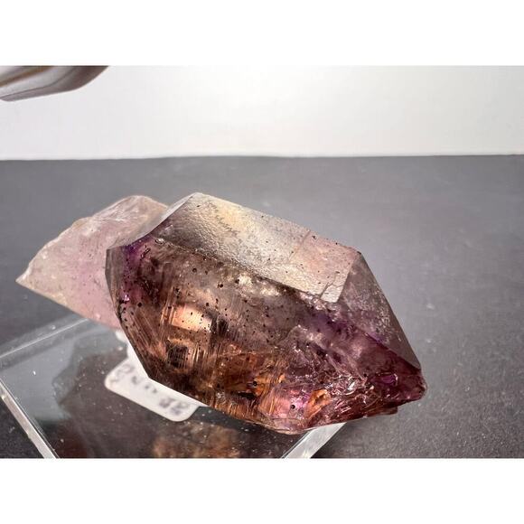 Shangaan Amethyst is a blend of Amethyst, Clear Quartz, and Smokey Quartz that commonly contains Red Hematite Inclusions. It is commonly found in Skeletal/Venster formations, Elestial formations, as well as Scepters. Due to how they form, Shangaan Amethysts are more likely to contain Enhydros.