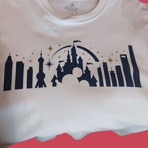 Shanghai Disney Resort T-Shirt With Skyline & Castle Design wht/blue/gold XLarge