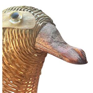 This vintage handcrafted duck-shaped basket combines functionality with artistry. Made of rattan and bamboo by Shanghai Handicrafts, it serves as a unique decorative storage solution.
