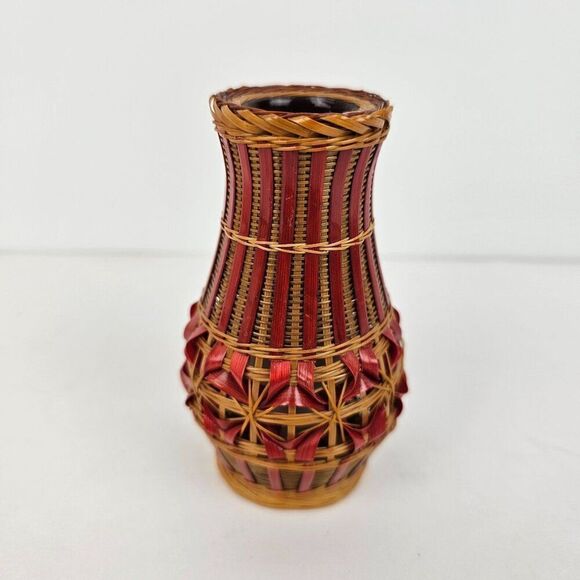 Tags: Handmade Weave Lacquer Hand Crafted Artisan Boho Decor Vintage Bud Flower Mini 1970s 70s Chinese Art
